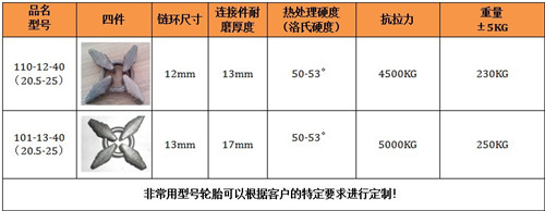 保養鏈耐磨性好,抗疲勞性強,根據使用條件壽命達3000-8000小時。拆裝方便,省時省力,產品規格齊全,可與進口裝載機所匹配,輪胎保護鏈,采用高科技耐磨材料制成其結構新穎緊湊,性能穩定,主要適用于礦山作業的裝載機,其輪胎磨損快,使用壽命短,輪胎價格昂貴,使用成本高,將本產品嚴密的包裹在裝載機的輪胎上,可以有效的保護裝載機的輪胎,不被尖銳的石塊劃傷刺破,延長了輪胎的使用壽命,使用一條輪胎保護鏈,能節省十條輪胎以上的費用還能提高裝載機的工作效率和安全是礦山作業的必備品
